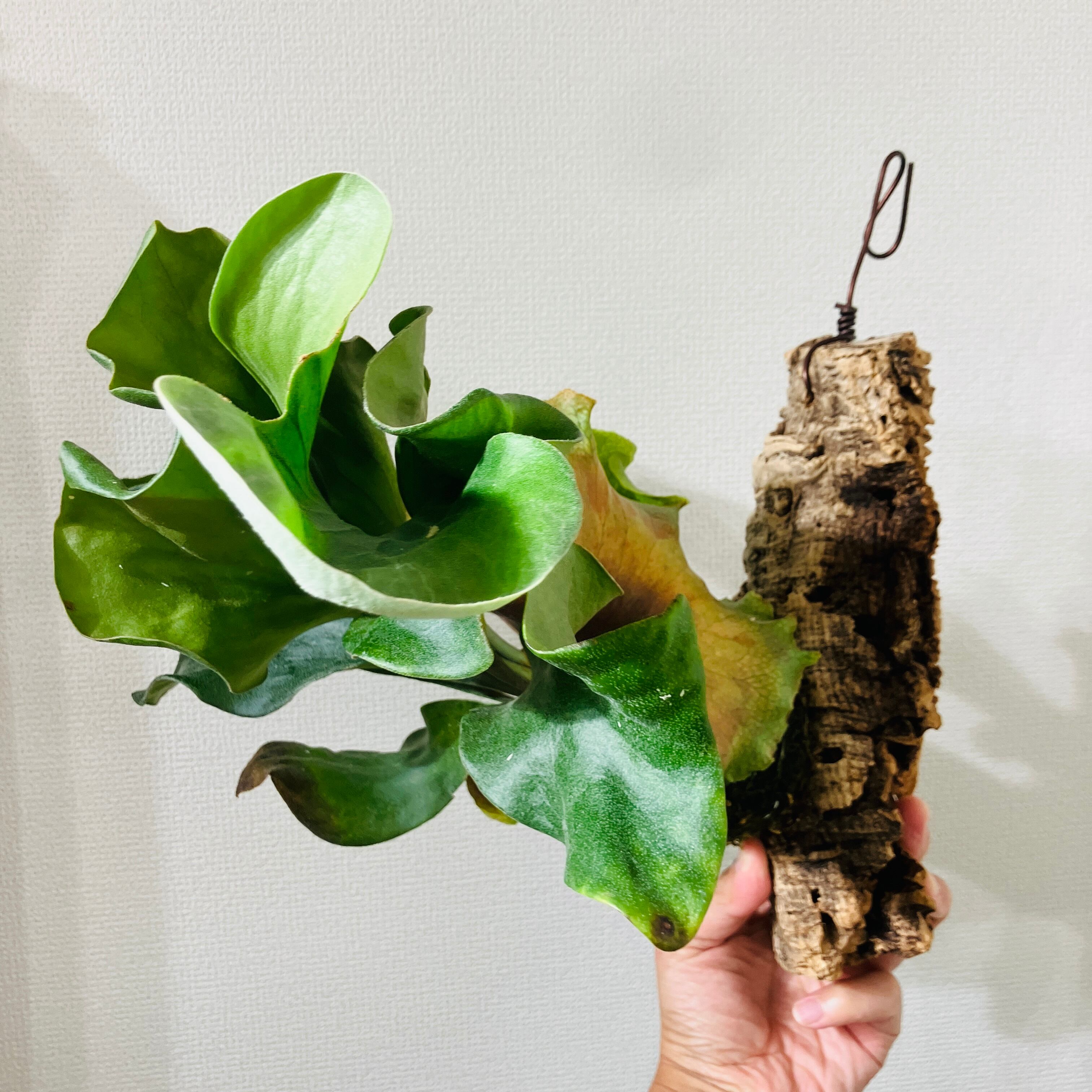 壁掛けで場所の取らないおしゃれなインテリアグリーンとして人気のビカクシダ、リビングや玄関にいかがですか?