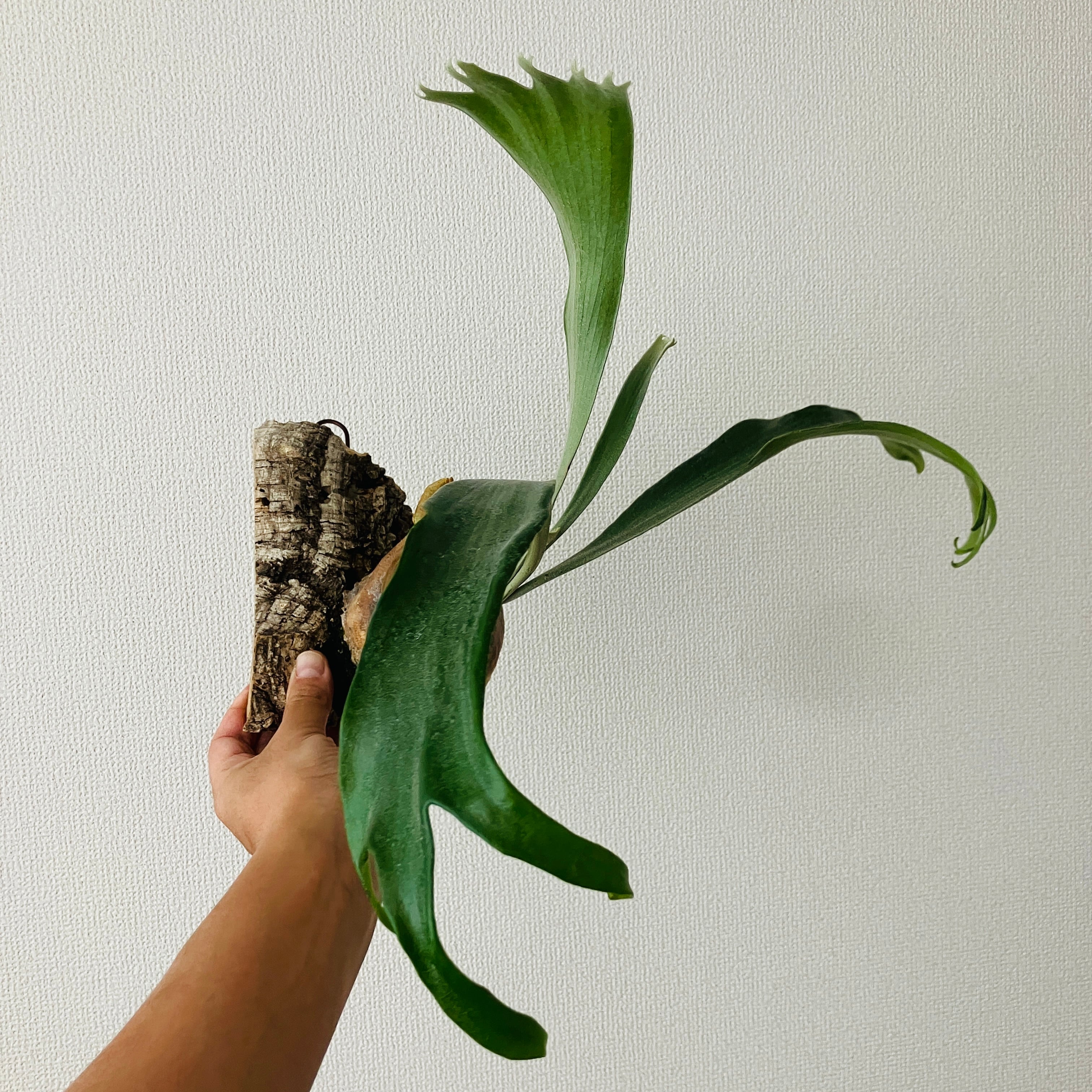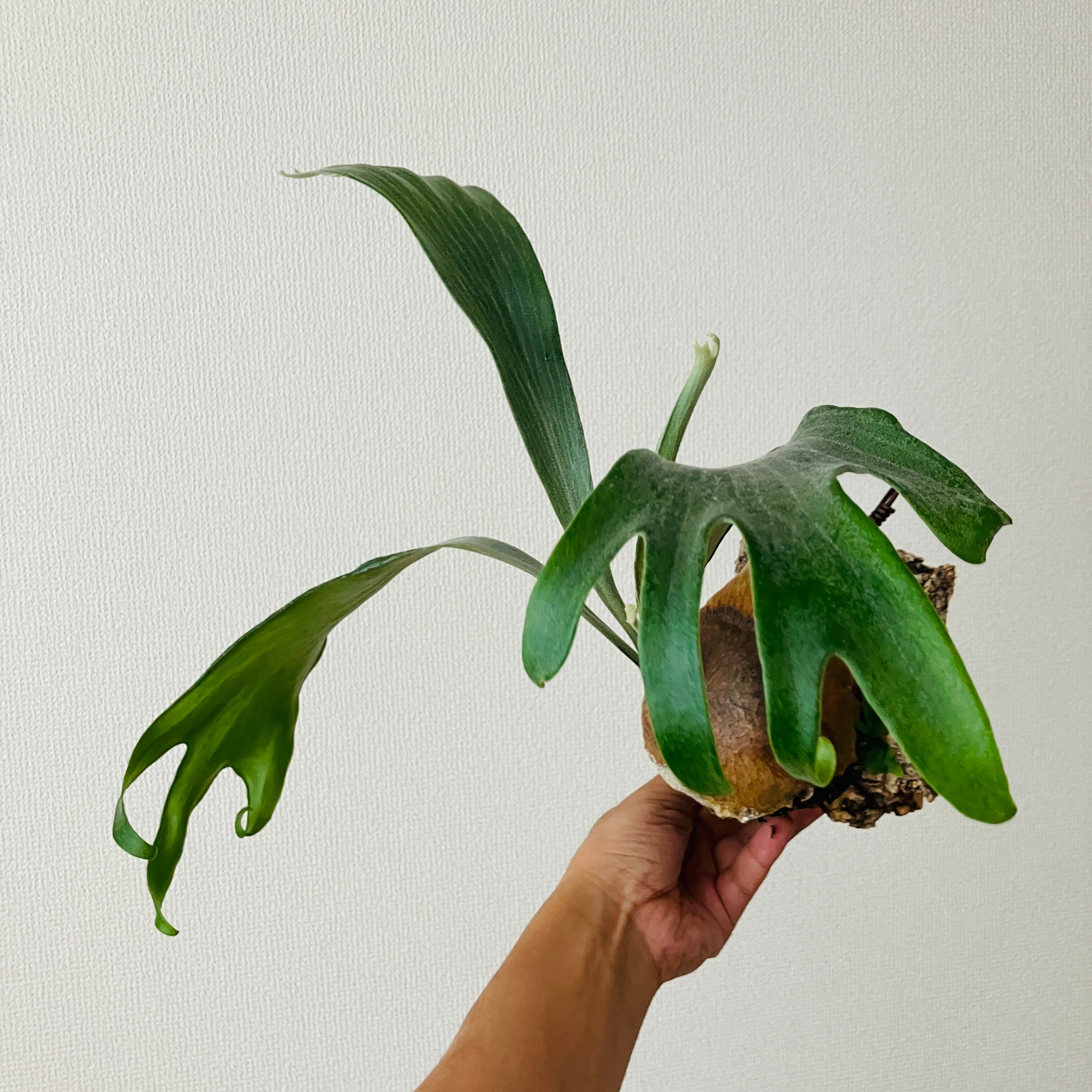 壁掛けで場所の取らないおしゃれなインテリアグリーンとして人気のビカクシダ、リビングや玄関にいかがですか?